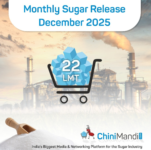 In an announcement on November 26, the Food Ministry allocated a monthly sugar quota of 22 lakh metric tonnes (LMT) for December 2025, which is equal to the quota allocated for December 2024.