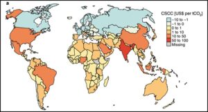 Although India’s emission intensity per capita is significantly lower than the major emitters such as the USA, and P.R of China, India is expected to face the highest economic impacts from climate change, measured by the Social Cost of Carbon (SCC). SCC represents the present value of future damages caused by a one tonne increase in CO₂ emissions within a given year. Its calculation spans a wide array of projected impacts: from diminished agricultural productivity and health effects to property damage, disaster frequency, energy system disruption, conflict risk, environmental migration, and ecosystem services loss. The SCC framework helps policymakers to compare climate change mitigation costs with long term benefits.