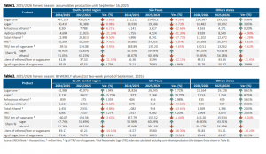 The total recoverable sugars (TRS) per ton of sugarcane stood at 154.58 kilograms, slightly lower than the 160.07 kilograms recorded in the same period last year. However, this level was above the average TRS for the year to date, which is 134.08 kilograms per ton, reflecting a 3.93% decrease from the previous year.