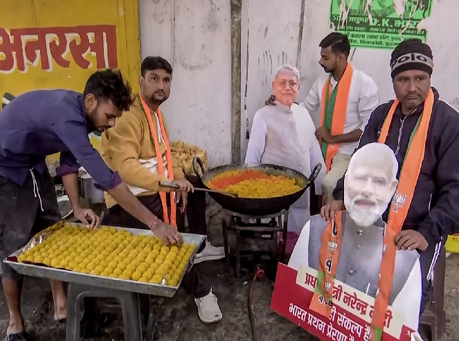 Patna (Bihar): Early trends in counting of votes in the Bihar Assembly elections on Friday showed the ruling National Democratic Alliance (NDA) way past the halfway mark of 122, with the Mahagathbandhan lagging.