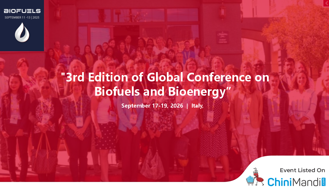 We welcome you to the “3rd Edition of Global Conference on Biofuels and Bioenergy“, scheduled from September 17-19, 2026 in Rome, Italy, offering a unique hybrid experience both in-person and online, ensuring global participation and collaboration with the theme “Advancing Biofuel Research: Bridging the Gap between Lab and Industry “.