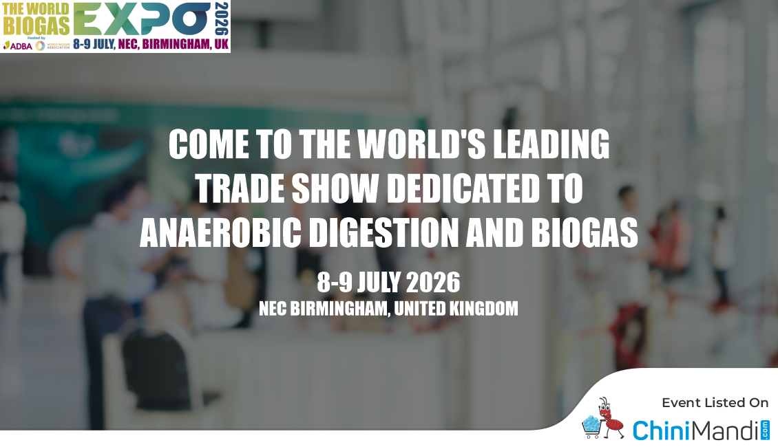 The World Biogas Expo is taking place in Birmingham, United Kingdom, on 8-9 July 2026. Organised by the Anaerobic Digestion and Bioresources Association (ADBA) and the World Biogas Association (WBA), the event is the only trade show solely dedicated to the global anaerobic digestion (AD) and biogas sector.