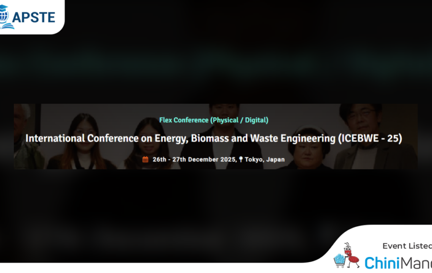 Conference Overview Join us at the highly anticipated International Conference on Energy, Biomass and Waste Engineering (ICEBWE – 25), taking place in Tokyo, Japan on 26th – 27th December 2025 . Hosted by one of the most trusted organizations, APSTE, the conference provides a premier...