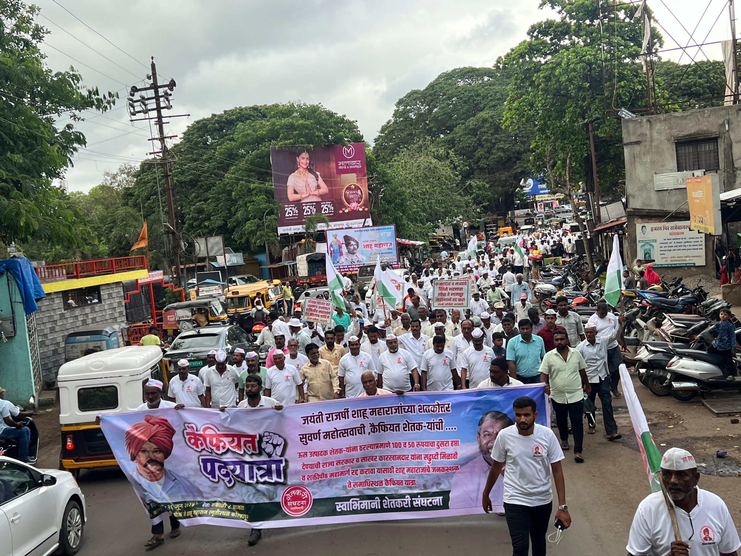 કોલ્હાપુર: છત્રપતિ રાજર્ષિ શાહુ મહારાજની જન્મજયંતિ નિમિત્તે બુધવારે પૂર્વ સાંસદ રાજુ શેટ્ટીના નેતૃત્વમાં સ્વાભિમાની શેતકરી સંગઠને સરકાર અને ખાંડ મિલોને 100 રૂપિયા અને 50 રૂપિયાનો બીજો હપ્તો ચૂકવવાની માંગ કરી હતી. શેરડી પકવતા ખેડૂતો અને શક્તિપીઠ હાઇવે કેન્સલ કરી કાગલથી કોલ્હાપુર સુધીની પદયાત્રા કાઢવામાં આવી હતી. રાજુ શેટ્ટીએ શાહુ સમાધિ સ્થળે જણાવ્યું હતું કે, શાસકોએ વિચારવું જોઈએ કે શું તેમને શાહુ મહારાજની જન્મજયંતિ ઉજવવાનો નૈતિક અધિકાર છે, તેમણે કહ્યું કે, રાજ્યમાં હરિયાળી ક્રાંતિ લાવનાર વસંતરાવ નાઈકના જિલ્લાના ખેડૂતો 1 જુલાઈથી લોન માફી મેળવો. આંદોલન શરૂ કરશે અને આ આંદોલન સમગ્ર રાજ્યમાં ચલાવવામાં આવશે.