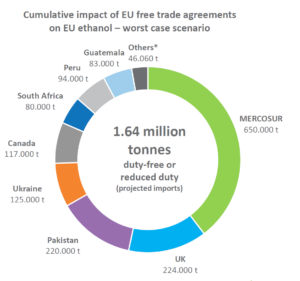 In a press release, the ethanol body stated that this important message should also have been sent in the recently agreed EU-Mercosur deal, which instead will allow a total volume of 650,000 tonnes of ethanol to be imported into the EU at a reduced duty (200,000 tonnes all uses) and completely duty-free (450,000 tonnes chemical uses).