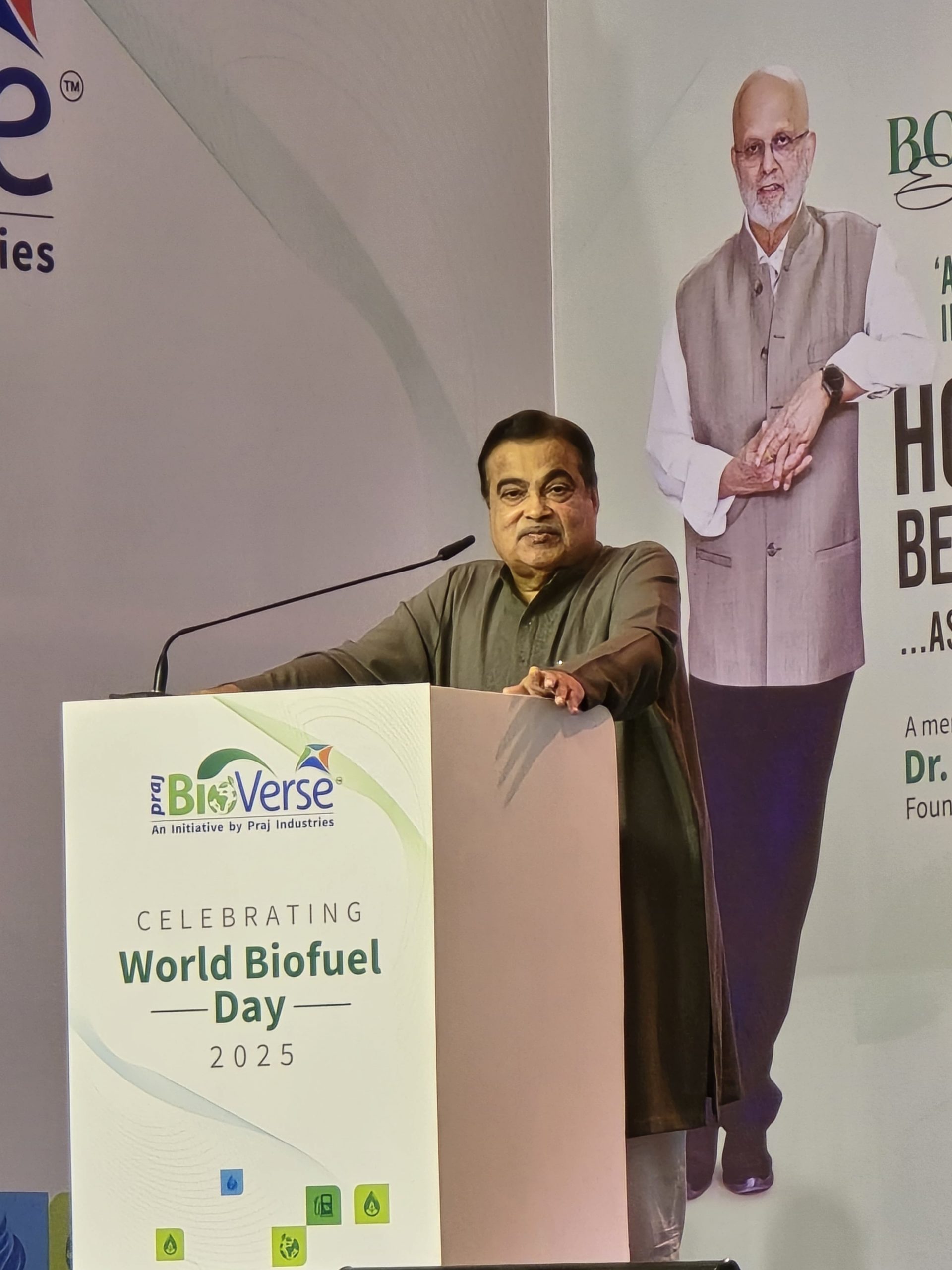 पुणे : केंद्रीय सड़क परिवहन और राजमार्ग मंत्री नितिन गडकरी ने पुणे में आयोजित विश्व जैव ईंधन दिवस की 10वीं वर्षगांठ समारोह में सतत ऊर्जा के प्रति भारत की प्रतिबद्धता के एक दशक पूरे होने का जश्न मनाया। प्राज इंडस्ट्रीज द्वारा आयोजित इस कार्यक्रम में, उद्योग जगत के नेताओं, नीति निर्माताओं और नवप्रवर्तकों को नई शुरू की गई ‘प्राज बायोवर्स’ पहल के तहत एक साथ लाया गया, जो वैश्विक जैव अर्थव्यवस्था में भारत के बढ़ते नेतृत्व का प्रतीक है।