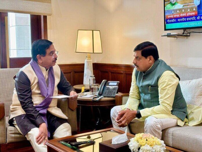 New Delhi: Madhya Pradesh Chief Minister Mohan Yadav met Union Minister Pralhad Joshi at Parliament in New Delhi on Wednesday and held discussions on key issues related to food grain procurement and storage capacity in the state.