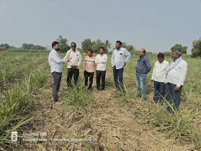 सद्यस्थितीत तोडणी झालेल्या उसामधील उर्वरित पाचट जाळू नये, पाचट जाळल्यामुळे होणारे तोटे याची माहिती देऊन पाचट कुजवण्यासाठी करावयाच्या उपायोजना व खोडवा ऊस पिकाचे एकात्मिक कीड रोग अन्नद्रव्य व्यवस्थापन, सद्यस्थितीत खोडवा ऊस पिकामध्ये अन्नद्रव्य कमतरतेमुळे निर्माण झालेली जांभळसर पाने विकृती, फुले ऊस १३००७ मधील तांबेरा व गवताळवाढ रोग यांची निरीक्षणे दाखवून व्यवस्थापनाच्या उपायोजना येळकर यांनी सुचवल्या. प्रगतिशील शेतकरी माऊली साबळे यांनी पाचट ठेवल्यामुळे झालेले फायदे बाबत त्यांचे अनुभव कथन केले. यावेळी गटप्रमुख शरद शिंदे, रामराव कराड, प्रशांत साबळे, माऊली कांडके, सोमेश्वर साबळे, विष्णू साबळे, राजभाऊ कांबळे, सुरज साबळे, किसनराव साबळे आदी शेतकरी मोठ्या संख्येने उपस्थित होते.