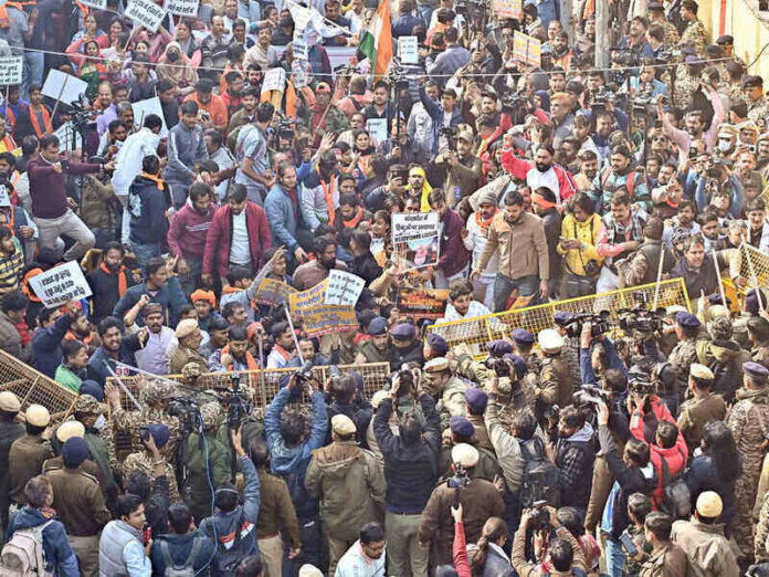 However, the situation escalated after a large number of demonstrators gathered near the premises, leading to tensions in the area. To prevent a breach of law and order, police resorted to a lathi charge to disperse the crowd, officials said.