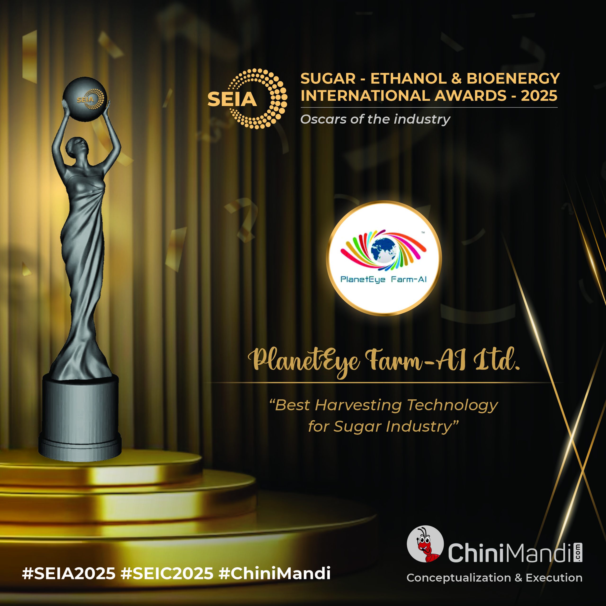 Bollywood actress- Hina Khan, presented an award to PlanetEye Farm-AI Limited for being Best Harvesting Technology for Sugar Industry.