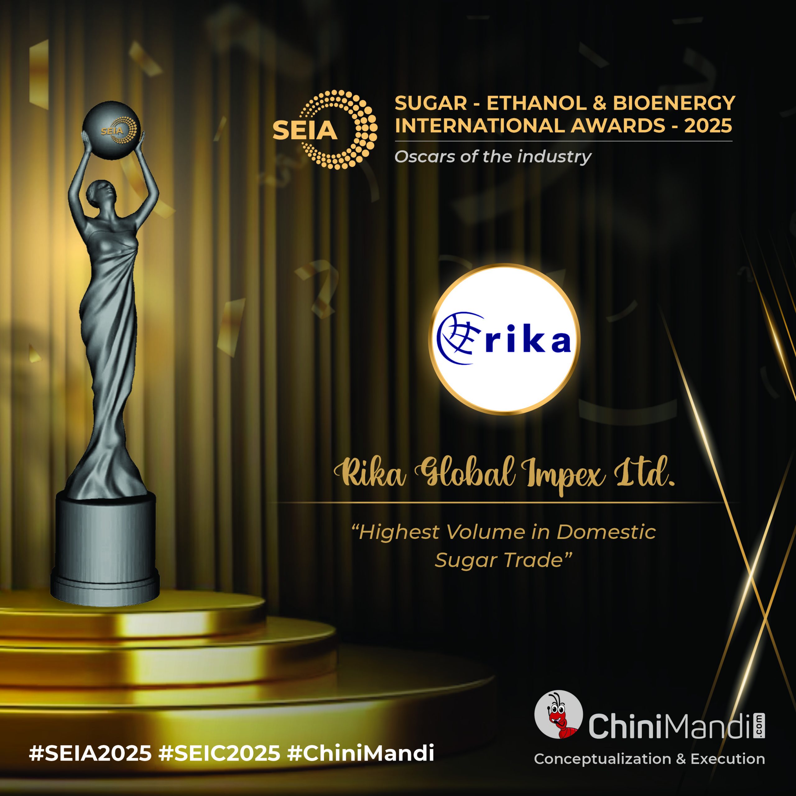 Bollywood actress- Hina Khan, presented an award to Rika Global Impex Ltd. for being Highest Volume in Domestic Sugar Trade.