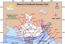 The India Meteorological Department (IMD) on Saturday said that Southwest Monsoon has advanced into some more parts of central Arabian Sea, south Maharashtra, Telangana and some parts of south Chhattisgarh & south Odisha and some more parts of Coastal Andhra Pradesh today, 08th June, 2024. “The Northern Limit of Monsoon now passes through 18.0°N/60°E, 18.0°N/65°E, … Continue reading Southwest Monsoon advances in more parts of south Maharashtra today: IMD
